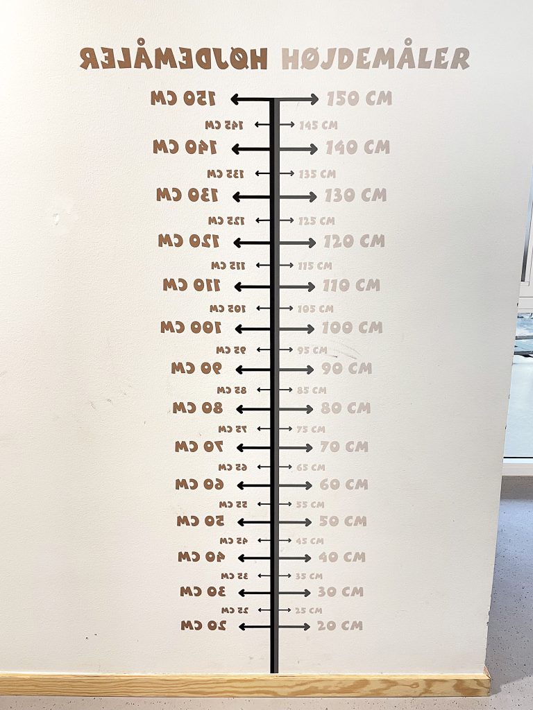 Med en højdemåler på væggen kan børnene nemt følge med i deres egen vækst.